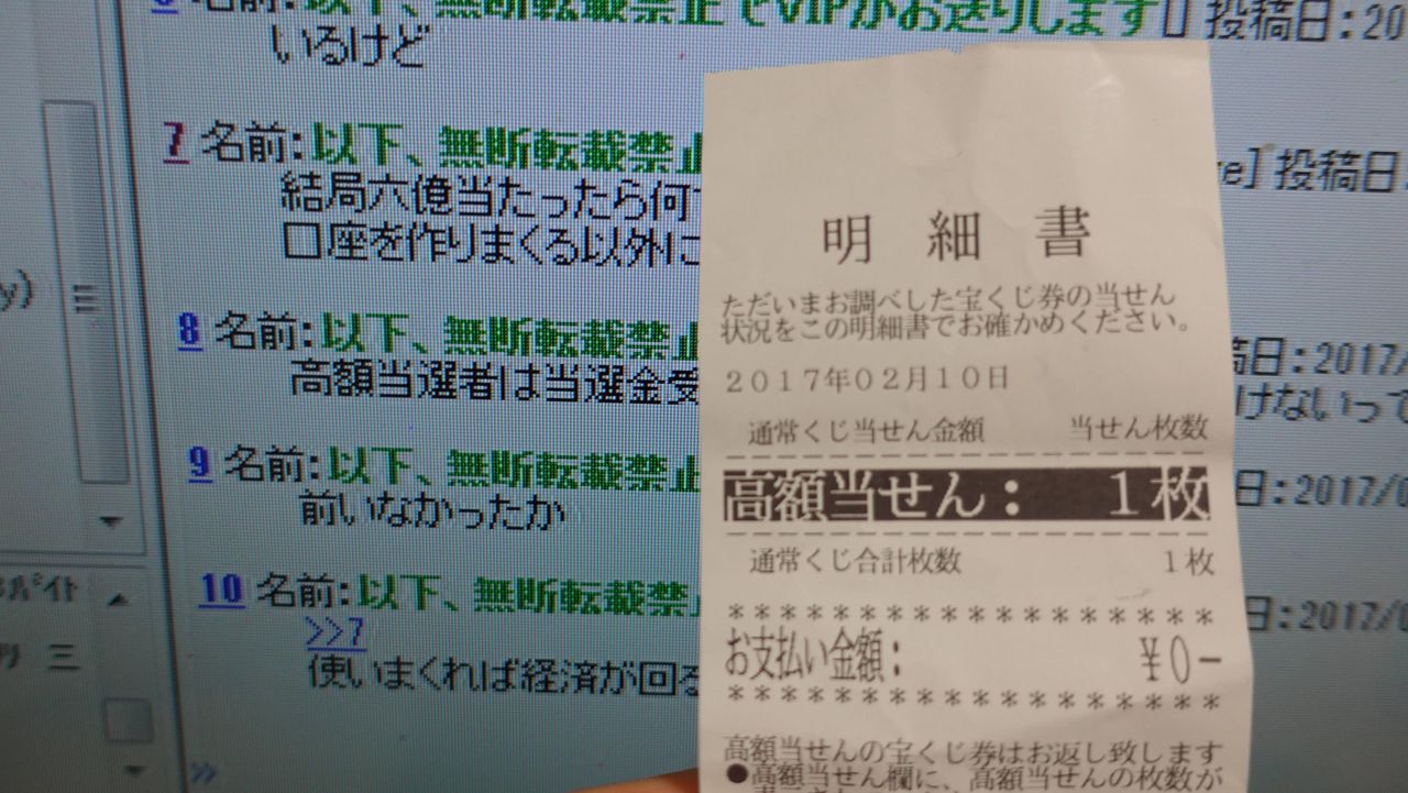 すまん100万だけど5万か10万以上は高額当選だろ