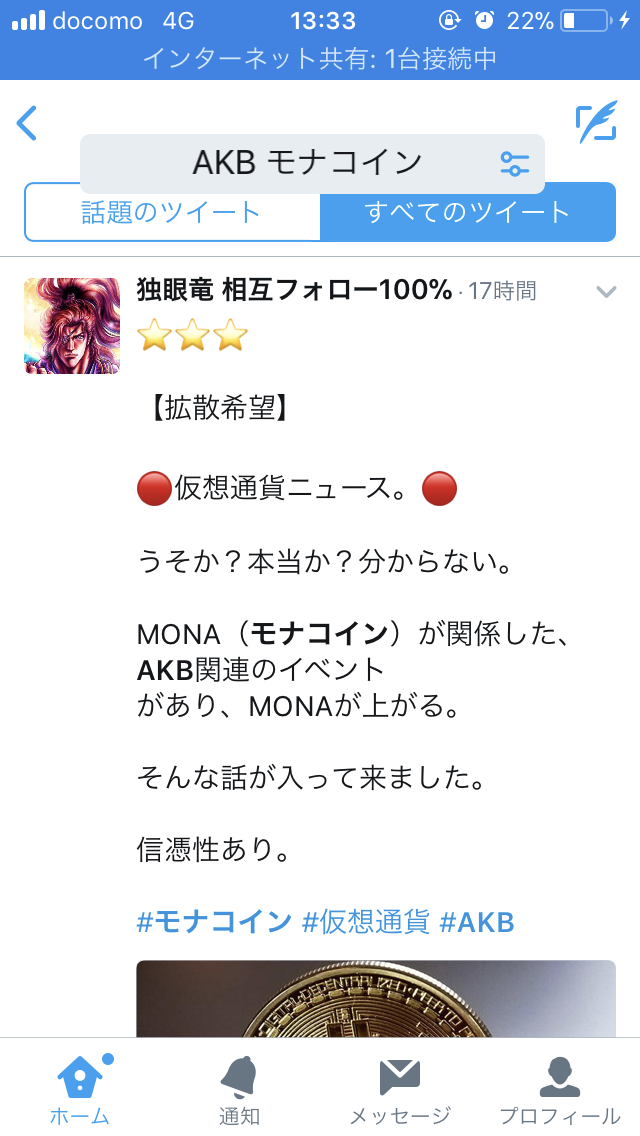 そんな簡単にイコールならないと思う、重要なのは秋元がモナコインに絡むか絡まないからだから、仮想通貨=金のイメージあるから、秋元は絡まないと思う